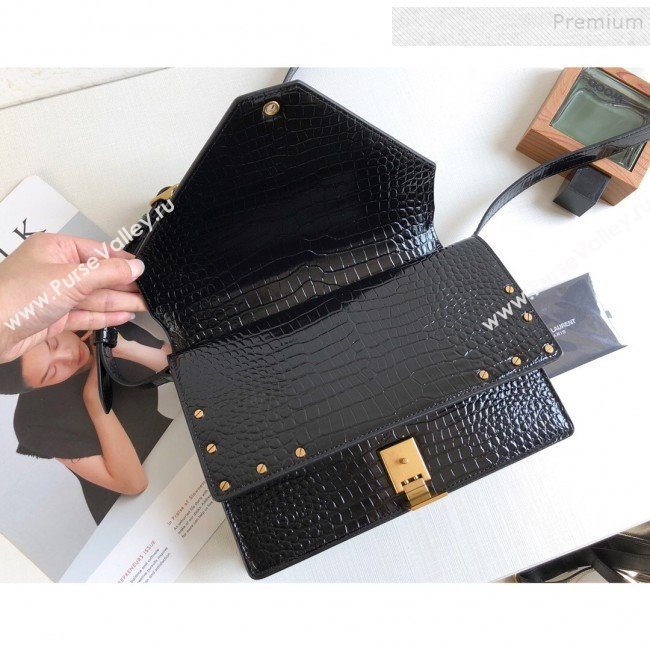 Saint Laurent Margaux Satchel Flap Bag in Crocodile Embossed Shiny Leather 578056 Black 2019 (KTS-9101002)